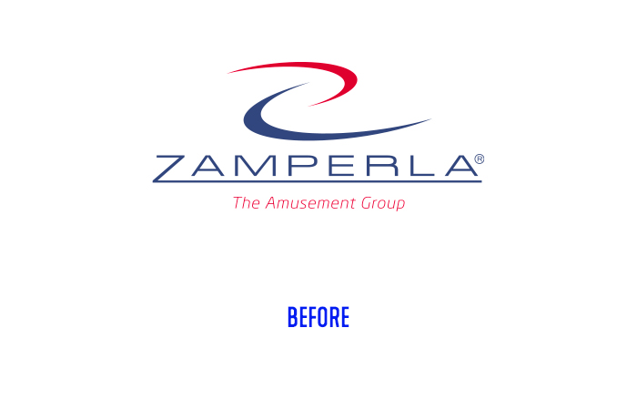 Decodificando la mission di Zamperla, ossia la sua volontà di svilupparsi e innovarsi nella costruzioni di nuove attrazioni per lasciare un’ esperienza unica e memorabile alle persone di tutte le età, si è arrivati a un nuovo design che assieme alla scelta tipografia e alle sfumature cromatiche, trasmette la volontà di conferire tutto questo in un segno. Il logo prende una forma più solida e materica che rappresenta la Z e al contempo richiama quel vortice di velocità tipico delle giostre.